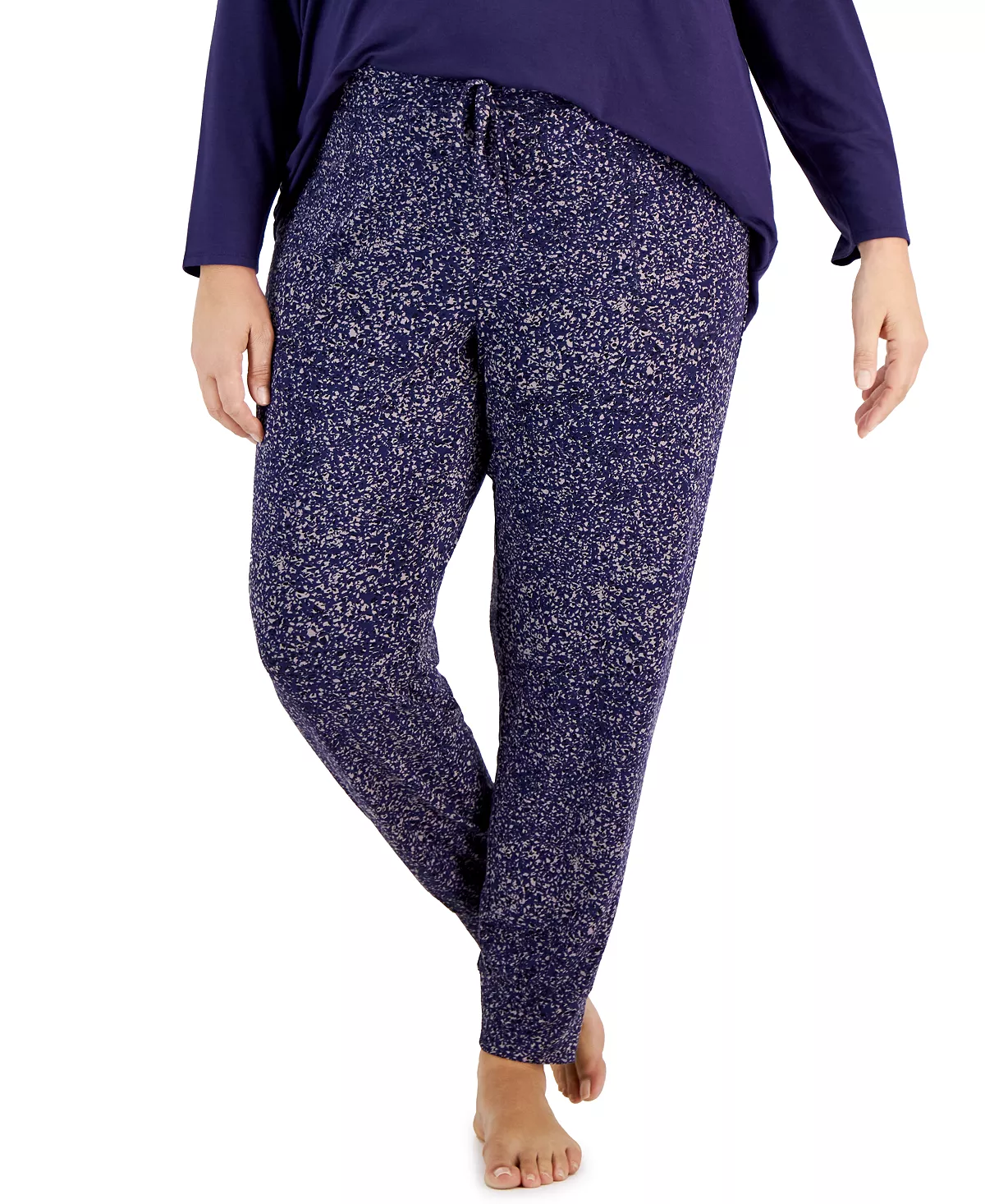 A comfy drawstring waistband puts the perfect finishing touch on these plus size jogger-style pajama pants from Alfani.