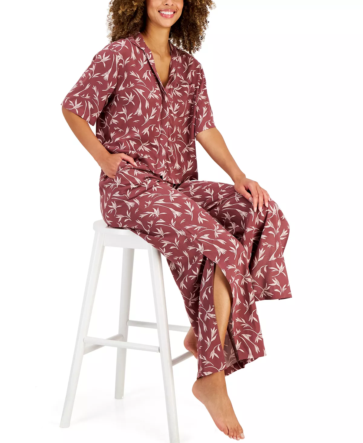 With a cropped shirt and side-slit pants, this pajama set from Alfani keeps you fashion-forward sleep style.