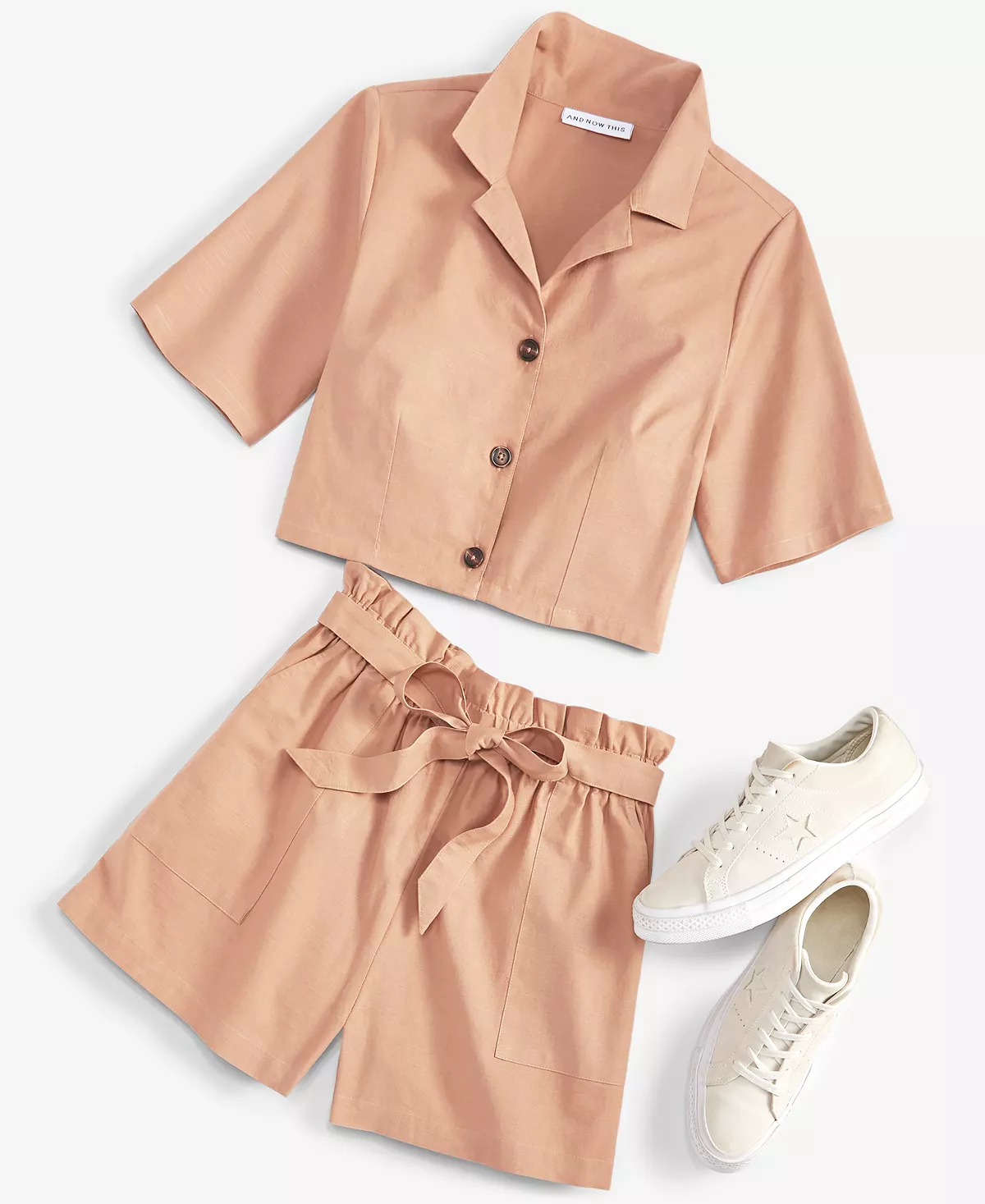 Put these on rotation! And Now This delivers with these cotton shorts designed with a playful paperbag waistband.