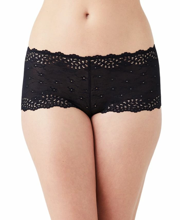 These curve-hugging stretch lace boyshorts from b.tempt’d feature allover eyelets and flirty scalloped-edge details.
