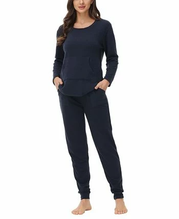 This comfortable pajama set is perfect for relaxing days and restful nights. Quilted fabric top and french terry jogger is totally soft and cozy.