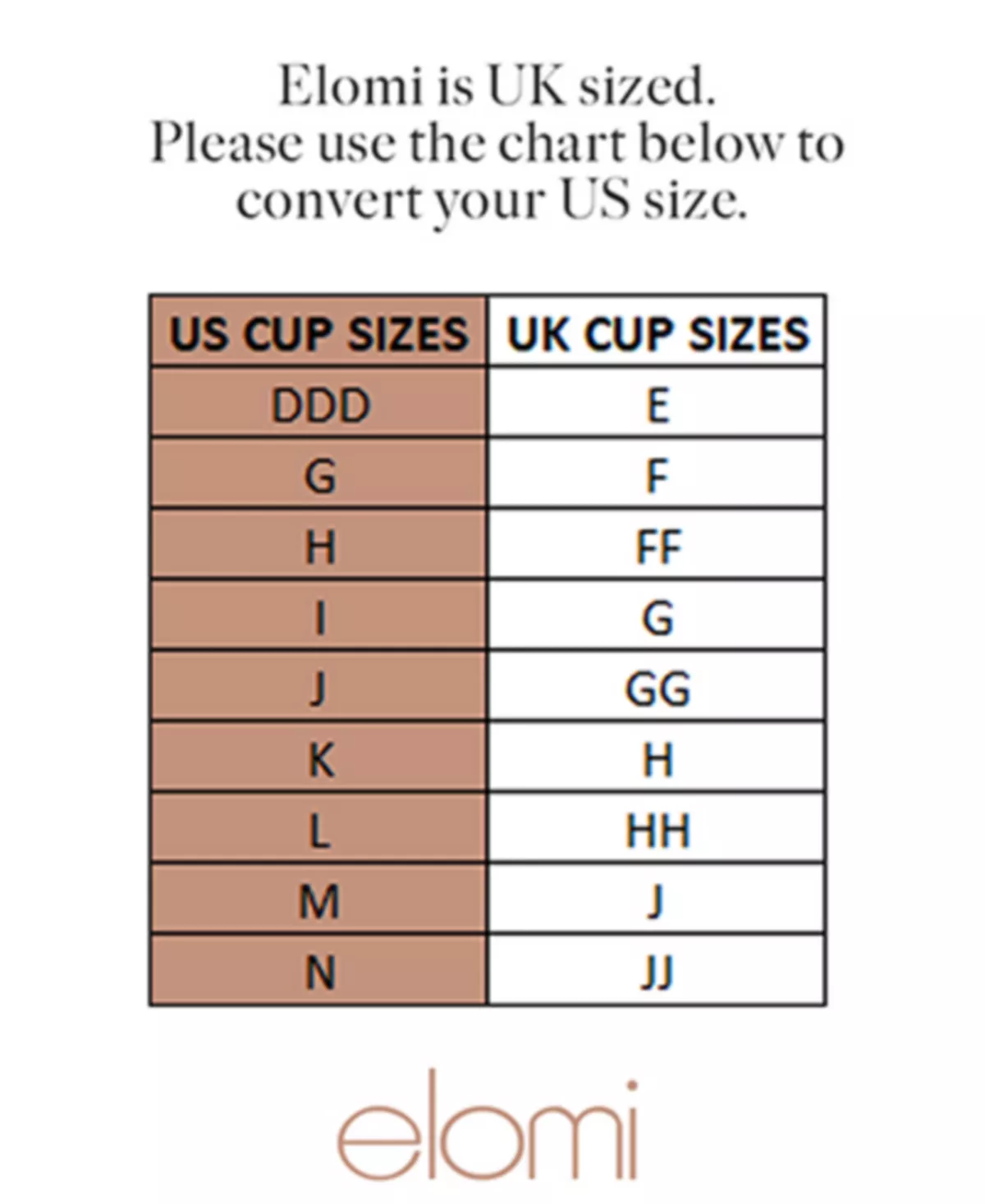 Audacious and youthful, Elomi’s Charley plunge bra combines gives a plunge fit without push up. A light diamond mesh fabric with shaping stretch lace and pretty embroidery combines at the cups and center for pretty embellishments and an alluring silhouette. Style #EL4382