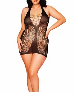 - 1 Piece non support chemise with deep front laced V and very sheer