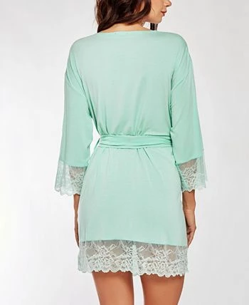 Elevate your lounge look in icollection’s ultra soft modal robe featuring a graceful lace contrast and self tie belted waist. Perfect for after a bath or lounging on the patio.