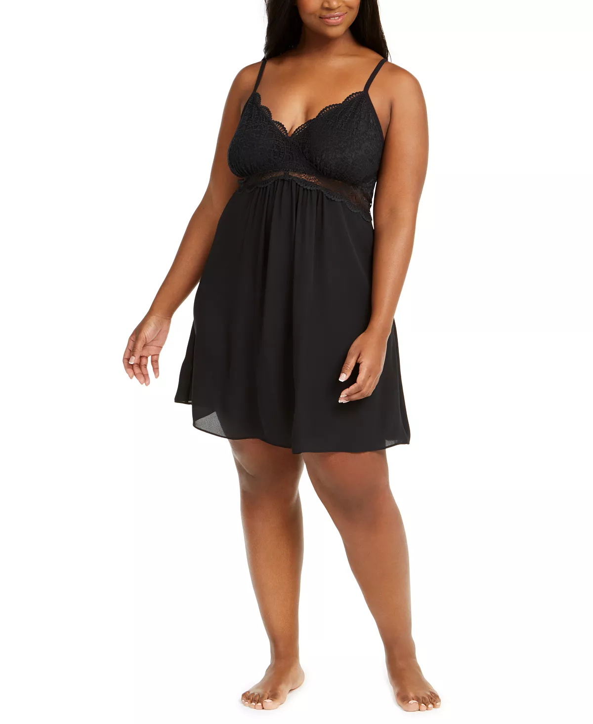 Pretty lace trim adds a sexy touch to this chemise nightgown from INC International Concepts®.