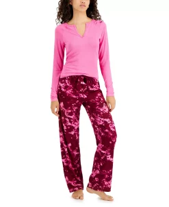 - Bottoms: hits at ankle; approx. inseam: 29-1/2″; brushed rib-knit fabric; elastic drawstring waistband