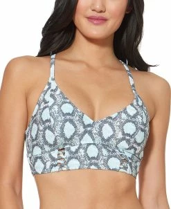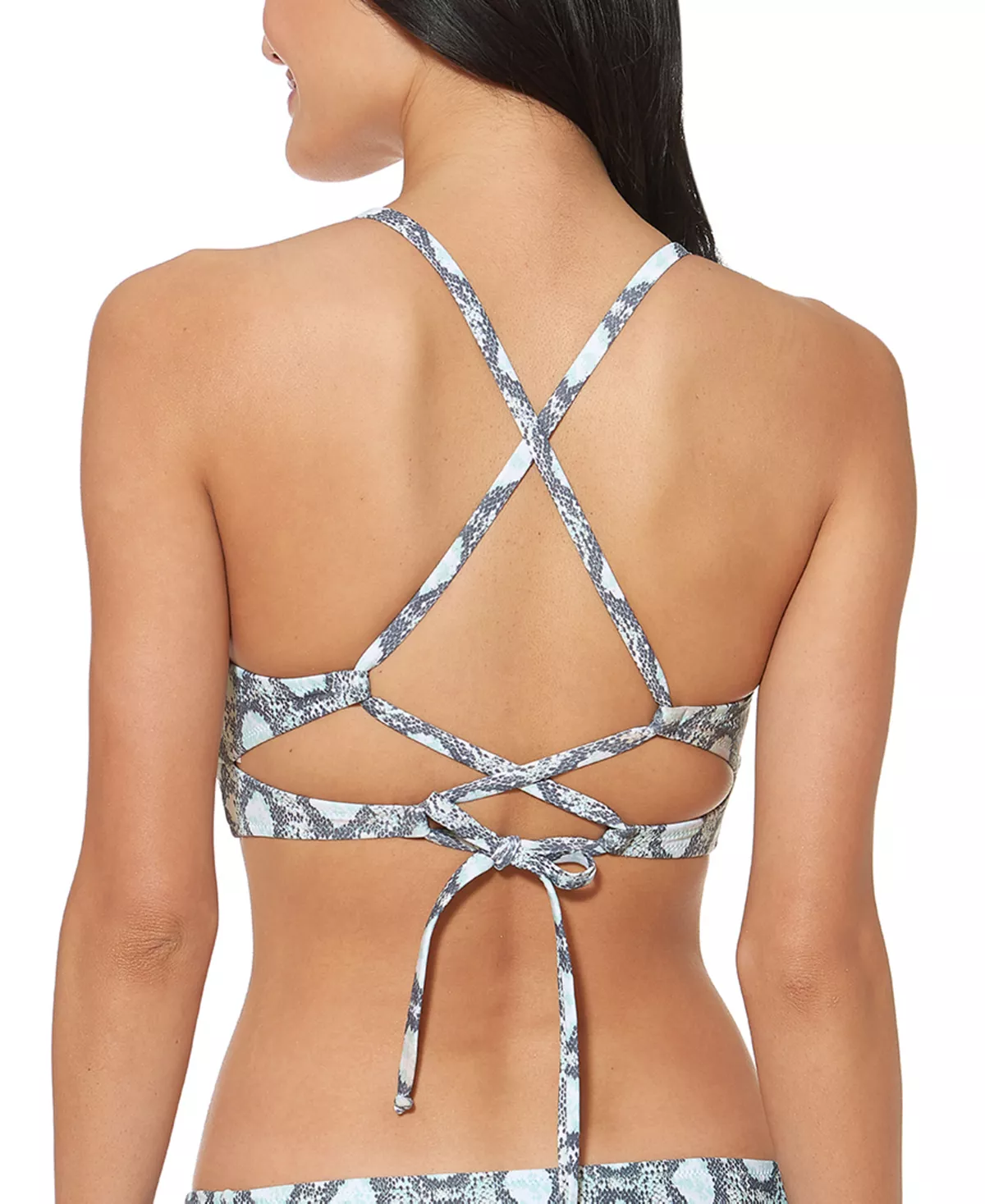 Designed with the fit of your favorite bralette and finished with a sleek snakeskin print, Jessica Simpson’s strappy-back bikini top is a fabulous way to update your swim collection.
