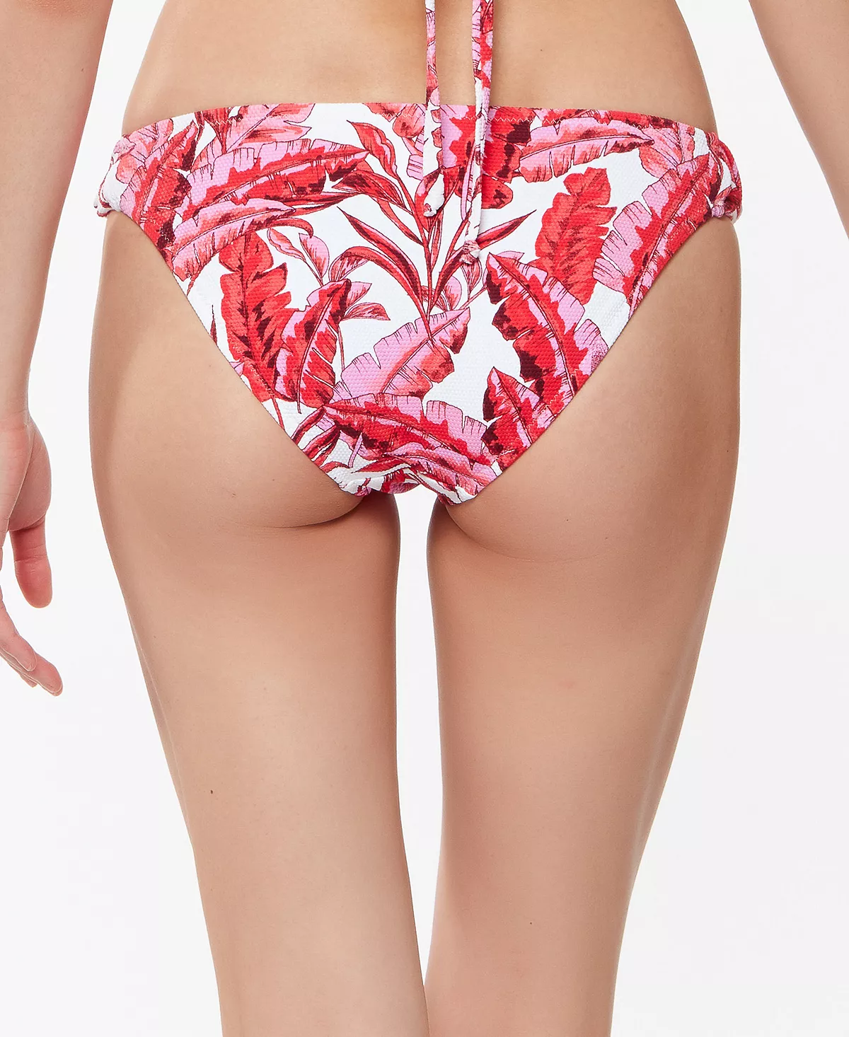 A side-twist design and bold prints accentuate these hipster bikini bottoms from Jessica Simpson.