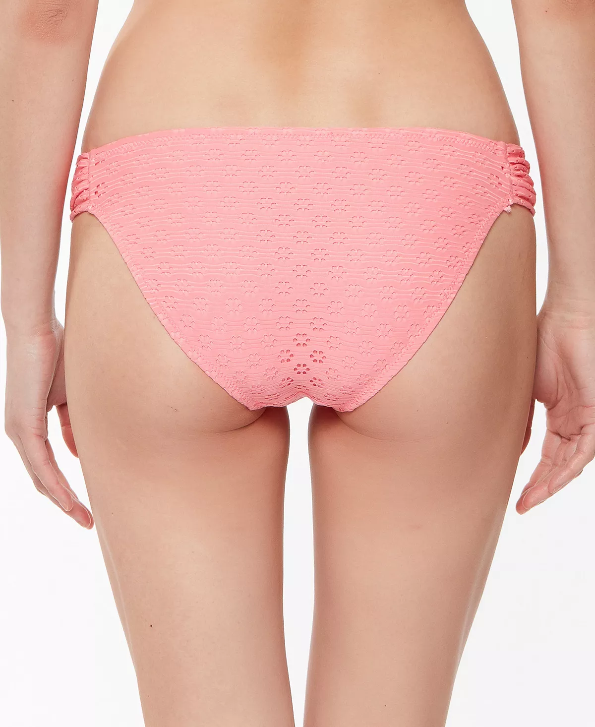 Jessica Simpson gives your poolside style a pretty update with these bikini bottoms designed with eyelet detail and shirred sides.