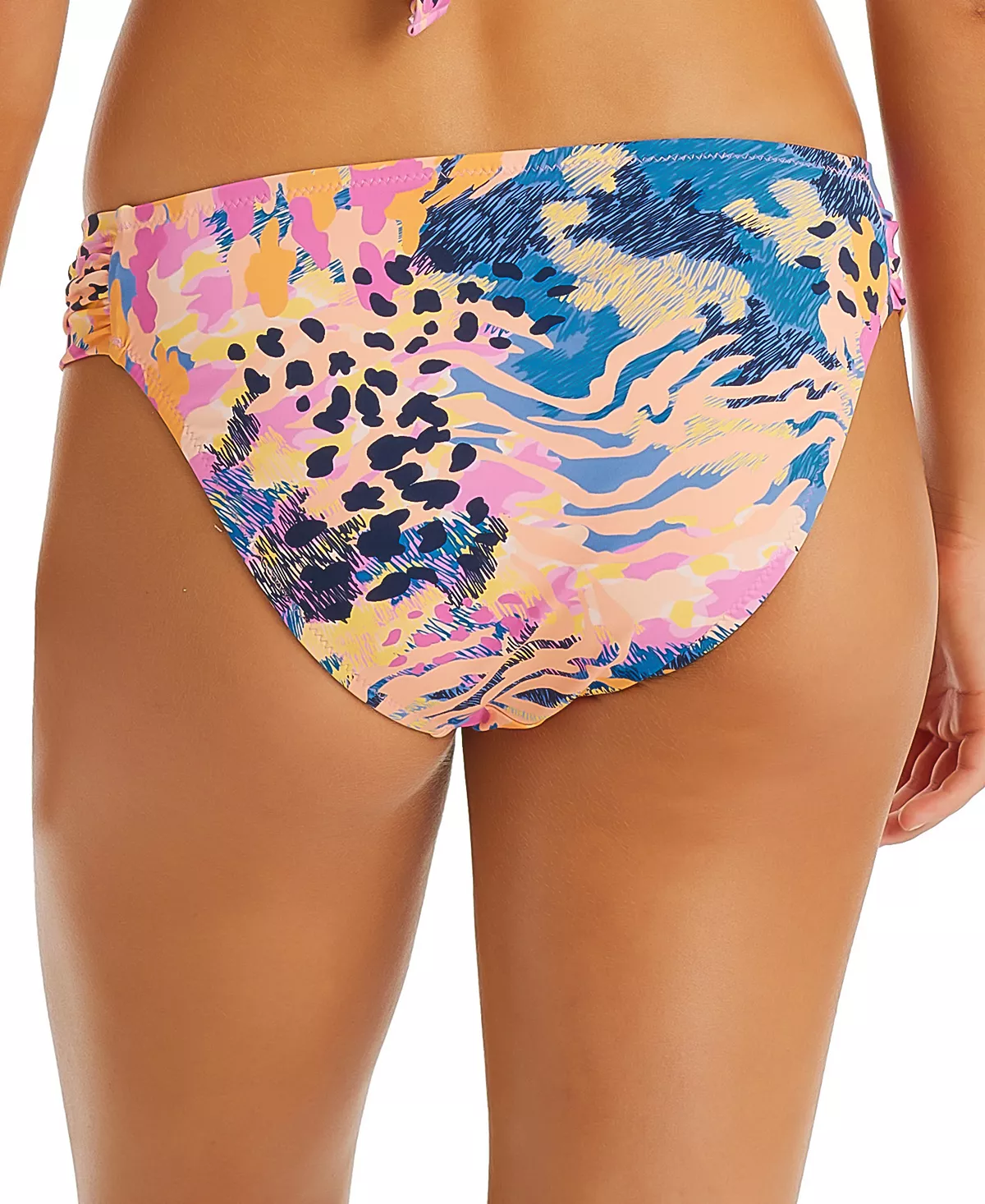 Sanctuary Abstract Animal One Shoulder Bikini Top & Cinch Back Hipster Bikini Bottoms