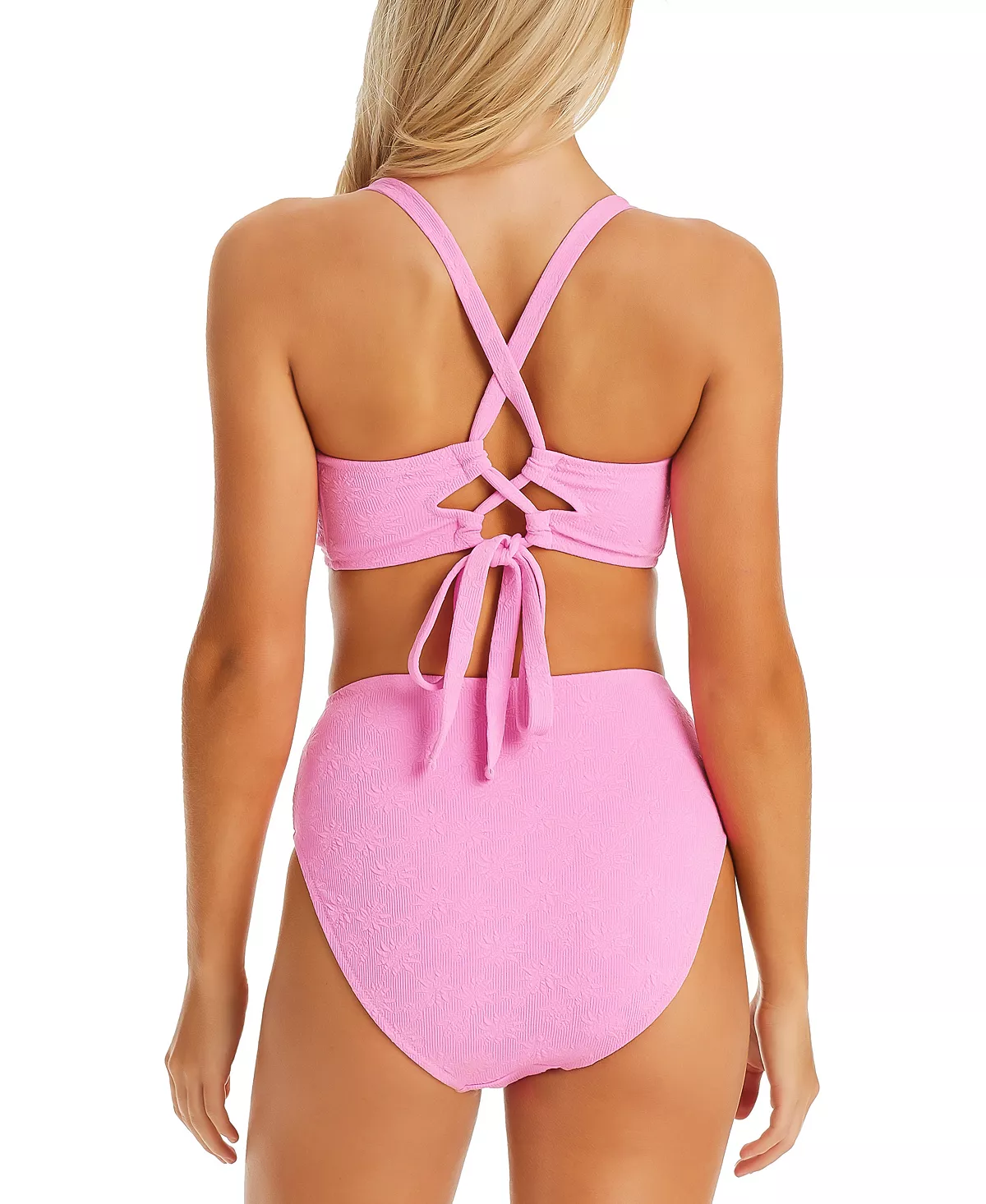Get your beach look twisted in a good way with the Sweet Daisy underwire bikini top and matching high-waist bikini bottoms from Jessica Simpson.