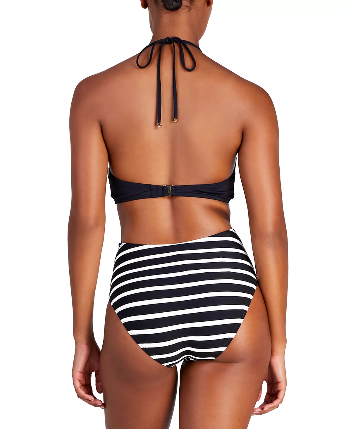 A stripe and solid print lends a touch of retro-inspired glam to this women’s swimsuit from Kate Spade New York.