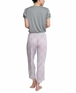 - Pants: approx. inseam: 29″, brushed knit fabric, elastic waist with drawstring tie