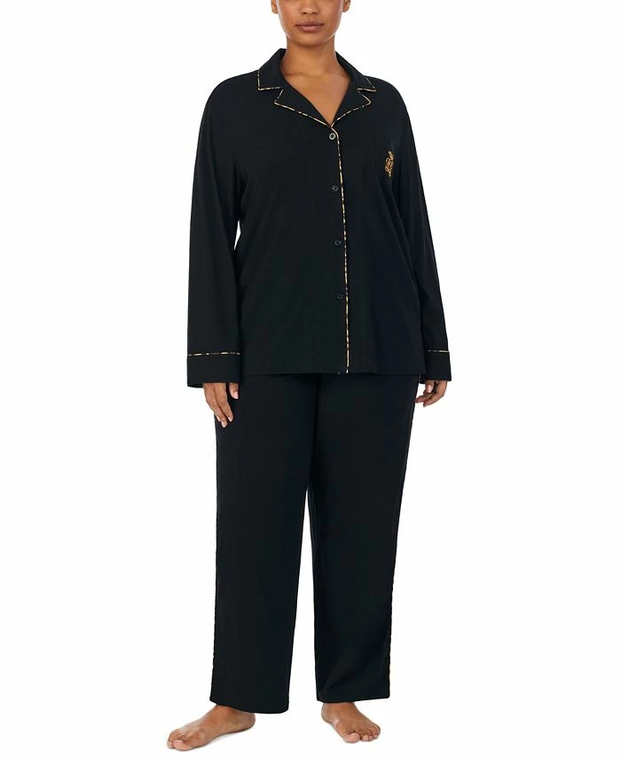 Leopard-inspired trim brings a hint of stylish drama to these plus size pajamas from Lauren Ralph Lauren. An elastic drawstring waistband gives these pajamas a comfy finish.