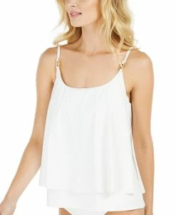 Effortlessly chic and oh-so flattering, Michael Michael Kors’ tankini top offers a breezy layered silhouette, glam chain-link accents and supportive underwire.