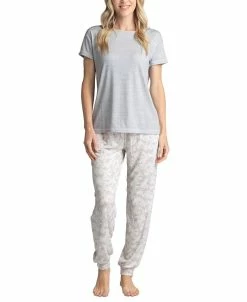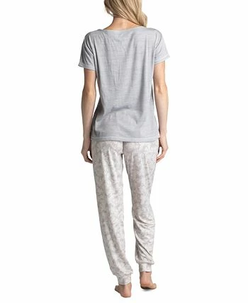 This Muk Luks plus size pajama set features soft dream-knit printed joggers that complement a solid ribbed crewneck top for a comfortable everyday sleep set.
