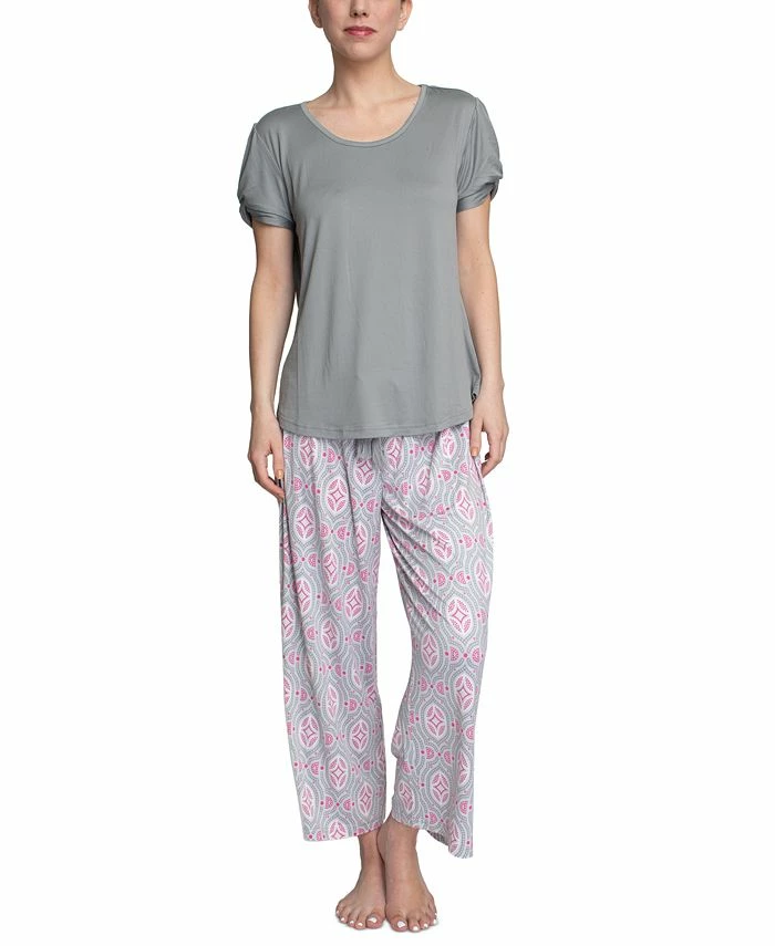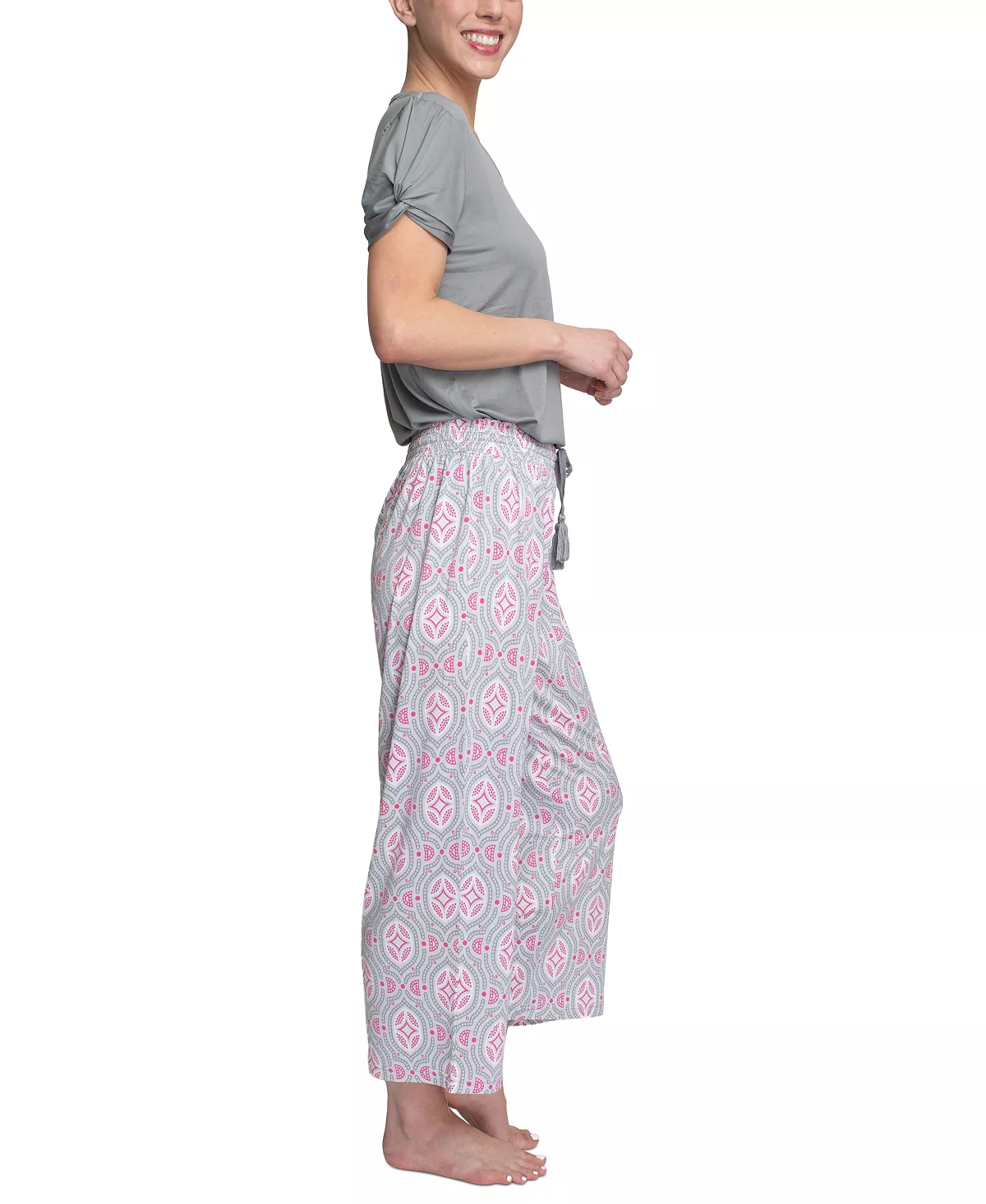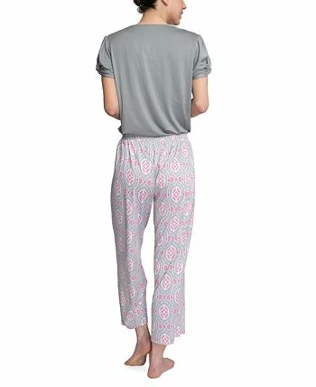 This cute plus size pajama set from Muk Luks features printed open-leg pants for a breezy feel and a short sleeve top with adorably embellished sleeves, giving bedtime a very good look.