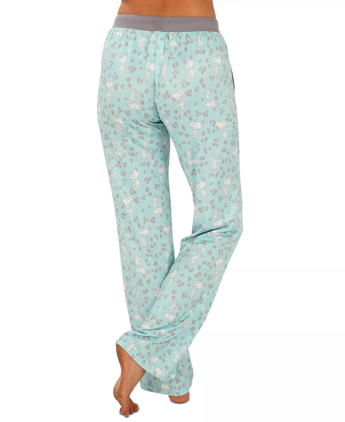 Snoopy does his famous dance on Munki Munki’s cute and cozy leopard-print pajama pants.