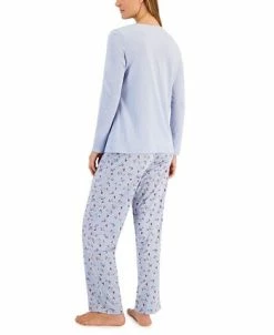 Charter Club Plus Size Long-Sleeve Top & Printed Pants Cotton Pajama Set, Created For Macy’s