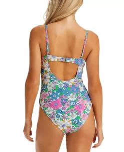 Jessica Simpson Women’s Textured Crazy Daisy Heart Ring Cut-Out One-Piece Swimsuit