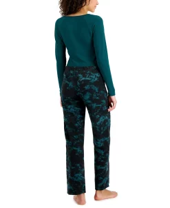 Jenni Split-Neck Pajama Top & Plaid Fleece Pajama Pants, Created For Macy’s