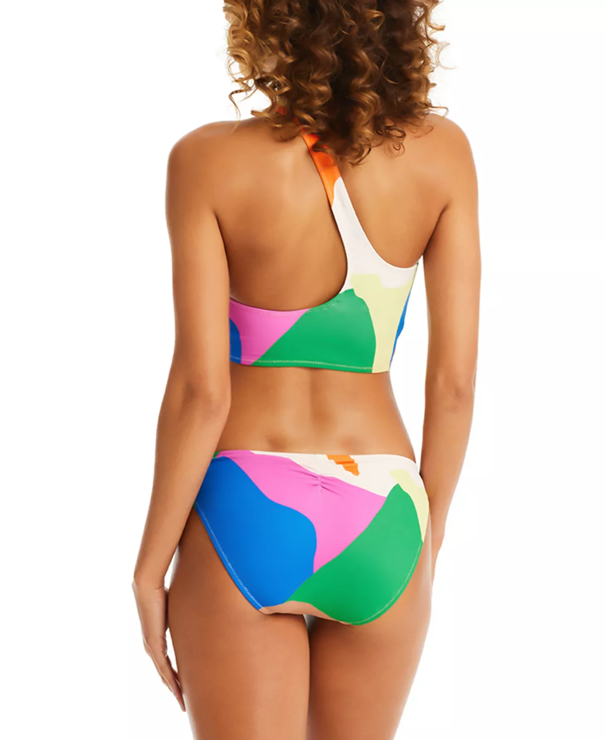 Sun bathing has never looked so good. This Sanctuary two-piece is all about modern fun with its asymmetric bikini top and matching hipster bottoms, both decorated in a vibrant print.