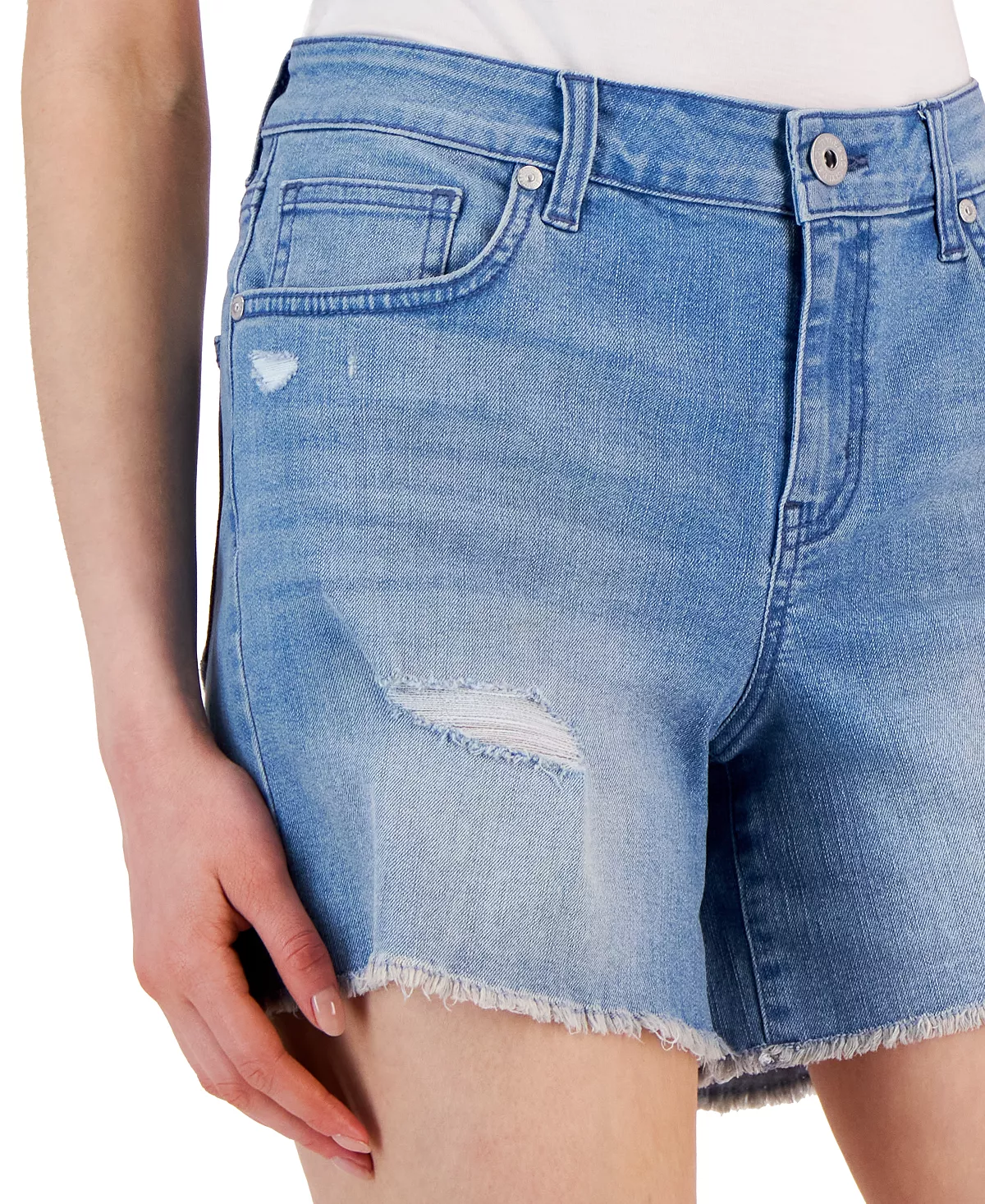 Distressed details and raw hems make these denim shorts from Style & Co perfect for casual days.